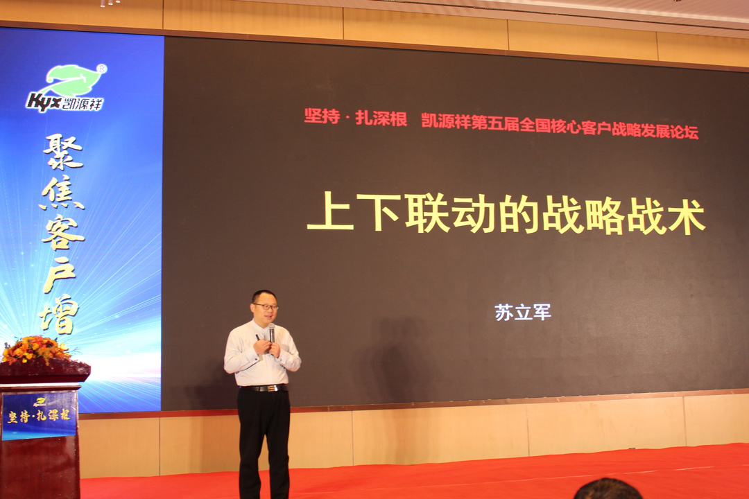 定位理論之父—特勞特(中國(guó))原高級(jí)戰(zhàn)略顧問,厚德戰(zhàn)略定位學(xué)院合伙人蘇立軍先生為大家分享了《上下聯(lián)動(dòng)的戰(zhàn)略戰(zhàn)術(shù)》就農(nóng)資行業(yè)未來的發(fā)展進(jìn)行了解析。蘇立軍先生從品牌定位及滾動(dòng)裂變兩個(gè)方面就產(chǎn)品的推廣公司的發(fā)展進(jìn)行了詳細(xì)的解說,讓我們明白了在現(xiàn)有的環(huán)境下如何高效的運(yùn)行上下聯(lián)動(dòng)的戰(zhàn)略戰(zhàn)術(shù)