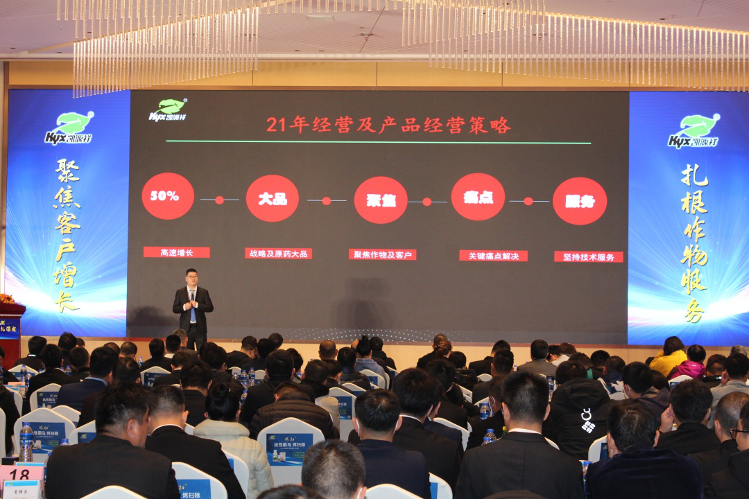 李總表示,在2020年雖然凱源祥取得了很好的成績(jī),但也得益于各位合作伙伴們的長(zhǎng)久支持,在2020年我們始終堅(jiān)持聚焦柑橘、梨樹兩種作物;聚焦美葉奇、金米冠、燼掃、細(xì)刃四大戰(zhàn)略產(chǎn)品;聚焦三個(gè)一工程客戶;聚焦四會(huì)服務(wù);著力打造技術(shù)型營(yíng)銷服務(wù)團(tuán)隊(duì)。在21年我們一定會(huì)繼續(xù)堅(jiān)持,始終保持自身的優(yōu)勢(shì),不斷改進(jìn)劣勢(shì)。繼續(xù)保持50%以上的增長(zhǎng)速度,繼續(xù)鎖定柑橘、梨兩種作物:提供最優(yōu)作物解決方案和關(guān)鍵痛點(diǎn)方案!在產(chǎn)品、客戶、人員、應(yīng)用技術(shù)、服務(wù)等方面,建立長(zhǎng)期競(jìng)爭(zhēng)優(yōu)勢(shì)!以4個(gè)戰(zhàn)略產(chǎn)品,5個(gè)重點(diǎn)產(chǎn)品,打造4+5核心大品,建立凱源祥核心產(chǎn)品群。集中資源打造7個(gè)千萬大品,將燼掃打造為唑蟲酰胺類全國(guó)第一品牌!堅(jiān)持聚焦三個(gè)一工程客戶,讓凱源祥產(chǎn)品在渠道扎根;聚焦四會(huì)服務(wù),讓凱源祥產(chǎn)品品牌在農(nóng)戶心智中扎深根;打造技術(shù)型營(yíng)銷服務(wù)團(tuán)隊(duì),擁有扎深根的組織能力。