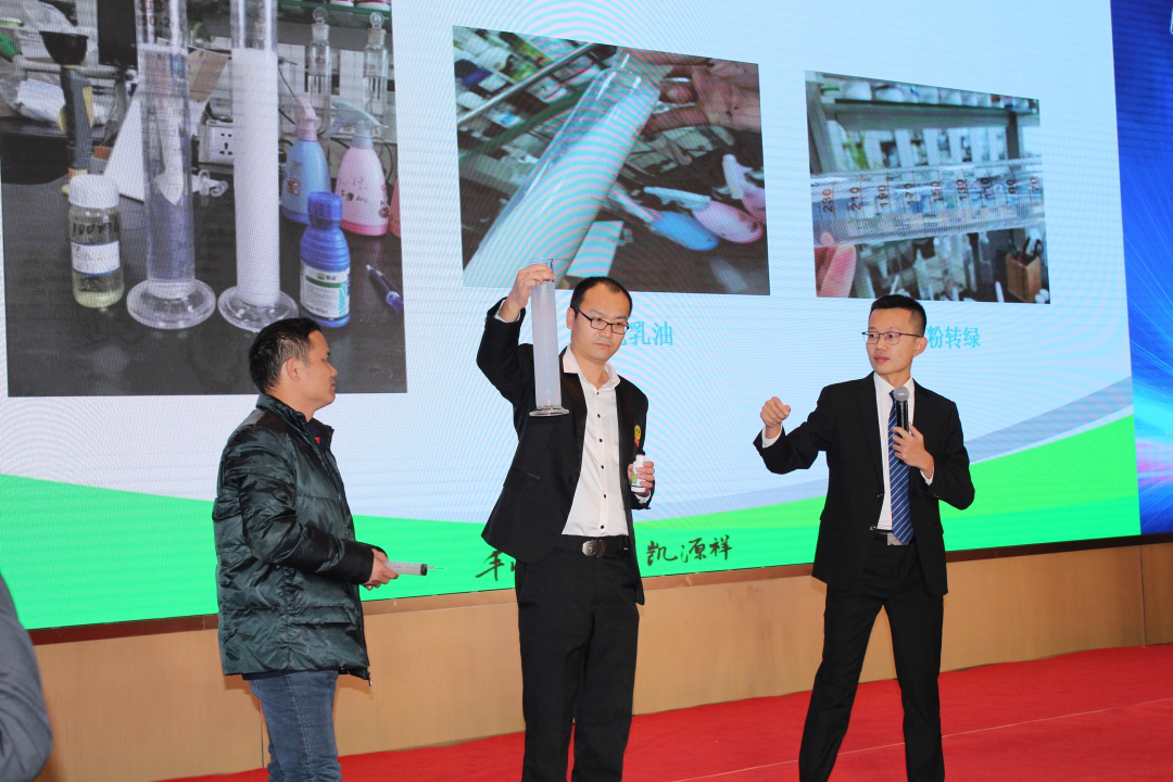 戰(zhàn)略及重點(diǎn)產(chǎn)品作為公司發(fā)展的有力武器,其重要性不言而喻。重點(diǎn)產(chǎn)品及戰(zhàn)略產(chǎn)品在市場(chǎng)上的占有率決定了公司品牌在市場(chǎng)中的知名度,凱源祥作物技術(shù)部產(chǎn)品經(jīng)理李康老師對(duì)戰(zhàn)略產(chǎn)品金米冠,重點(diǎn)產(chǎn)品粉轉(zhuǎn)綠和撩霜從產(chǎn)品特點(diǎn),應(yīng)用技術(shù)及操作思路進(jìn)行了詳細(xì)的的講解。并現(xiàn)場(chǎng)向各位合作伙伴展示了產(chǎn)品的入水效果,展現(xiàn)了公司產(chǎn)品的優(yōu)異性。