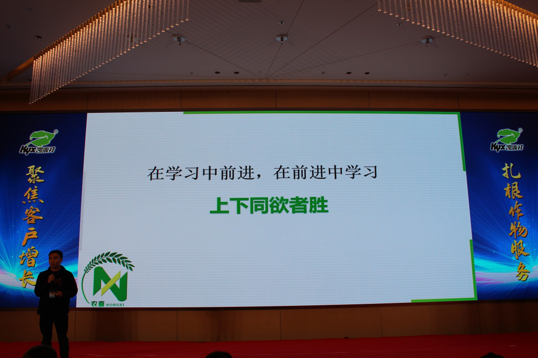 公司的發(fā)展不僅需要自身的努力,也需要各位合作伙伴的共同幫助。在12月8日的會(huì)議上半場(chǎng),我們邀請(qǐng)了公司優(yōu)秀合作伙伴同大家分享了與凱源祥合作的故事,山東濟(jì)寧農(nóng)喜農(nóng)業(yè)科技服務(wù)有限公司總經(jīng)理潘林先生講述了他是怎樣定位基層服務(wù),同凱源祥合作共贏;永年縣格綠豐農(nóng)資總經(jīng)理杜子海先生分享了與凱源祥合作15年的風(fēng)風(fēng)雨雨;云南云豐農(nóng)業(yè)科技有限公司羅明江經(jīng)理則分享了凱源祥同他從無到有,從無到優(yōu)的歷程。