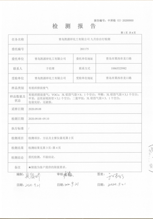 2020年9月份環(huán)境檢測(cè)信息公開(kāi)